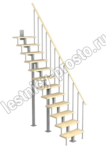 Модульная малогабаритная лестница Линия 2700-2925, Серый, Сосна, Нержавеющая сталь