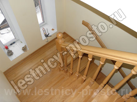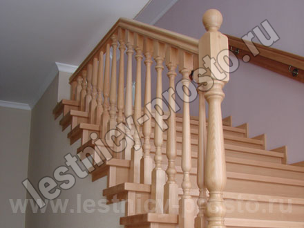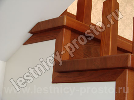 Деревянные ограждения, как правило, устанавливаются на ступени. Столбы крепятся в пол или в ступени прочными металлическими шпильками. Деревянные балясины сажаются на шканты с клеем. Редко используется боковое крепление деревянного ограждения. Для этого варианта требуются более длинные балясины, которые крепятся в торец лестничных маршей.
