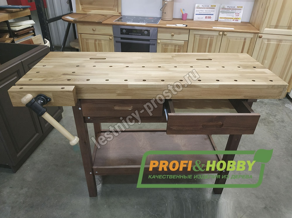 • Столешница и тиски выполнены из массива дуба