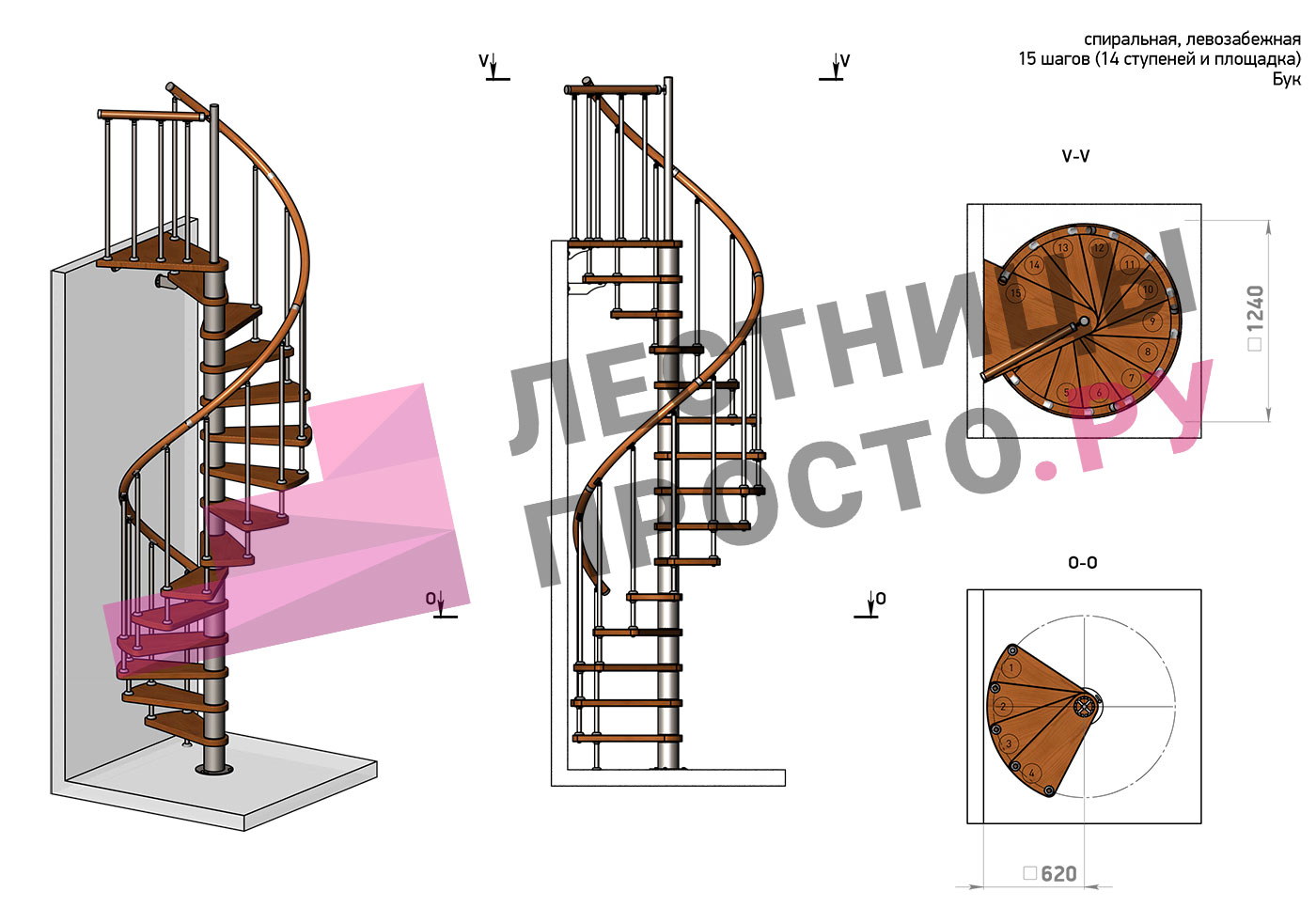 Винтовая лестница Prosto Spiral Black D120см, h325.7-369.8 см, бук