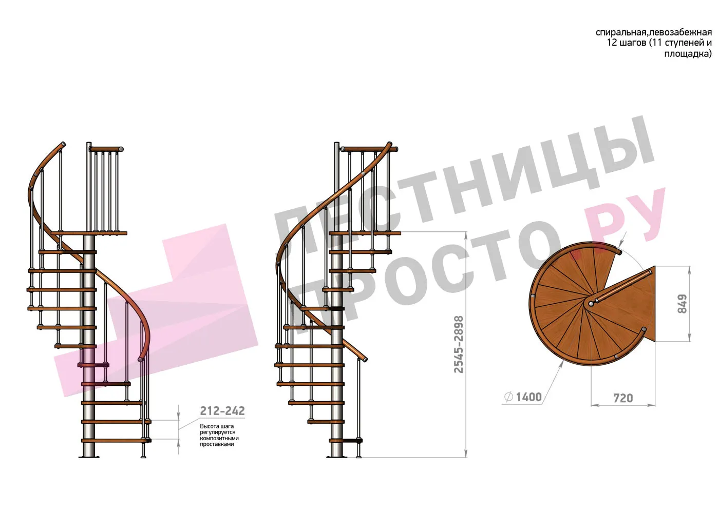 | Винтовая лестница Prosto Spiral Black D140см, h254.5-289.8 см |