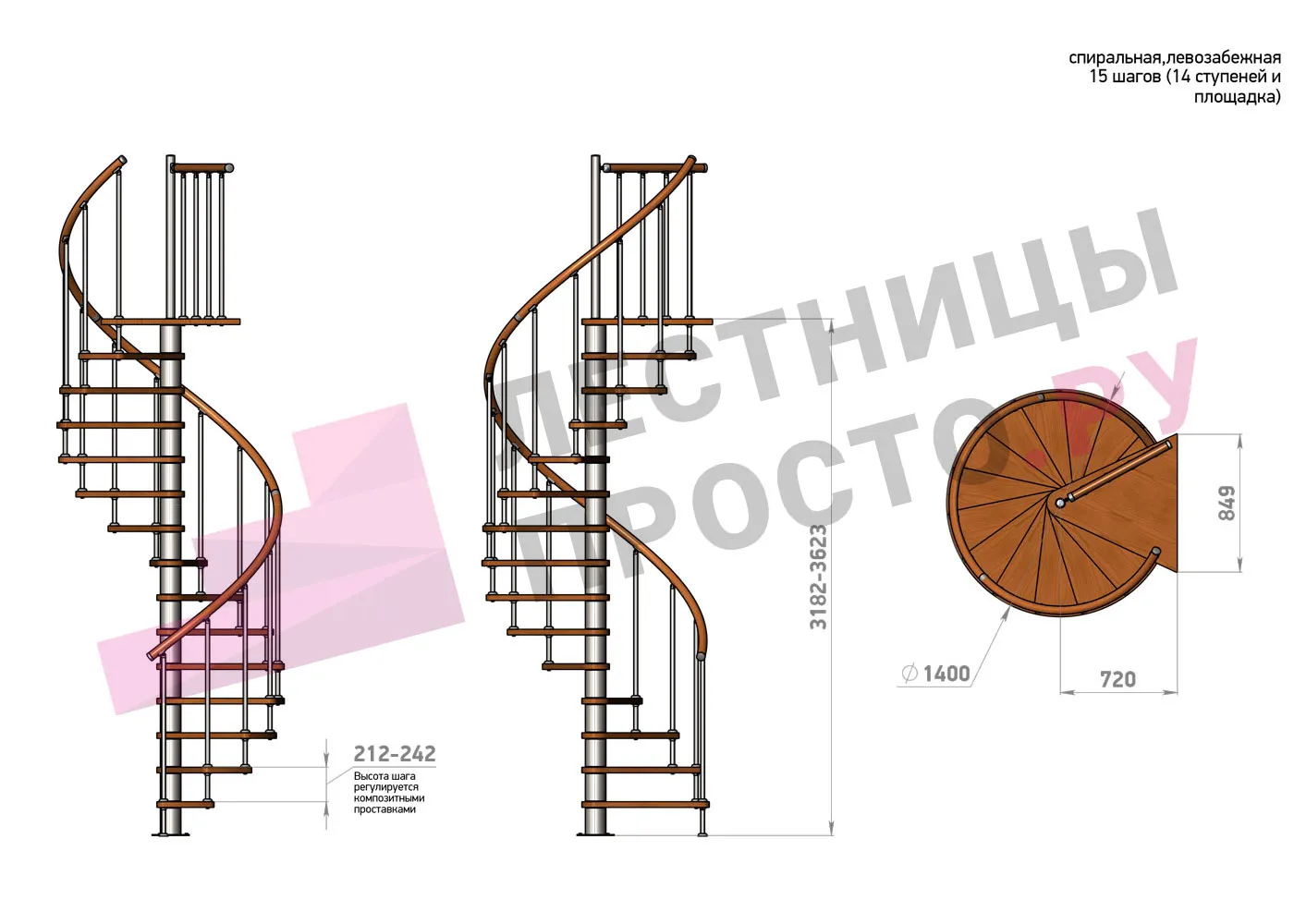 | Винтовая лестница Prosto Spiral Black D140см, h318.2-362.3 см |
