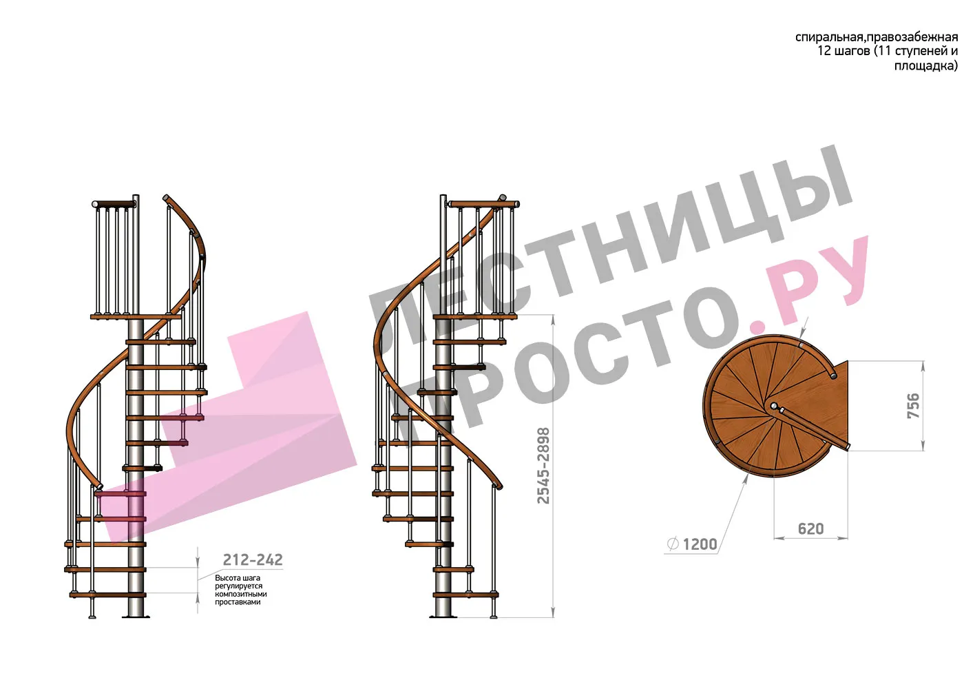 Высота ступеней регулируется с шагом 3 мм. в пределах 212-242 мм., благодаря чему, лестница прекрасно подгоняется под необходимую высоту.