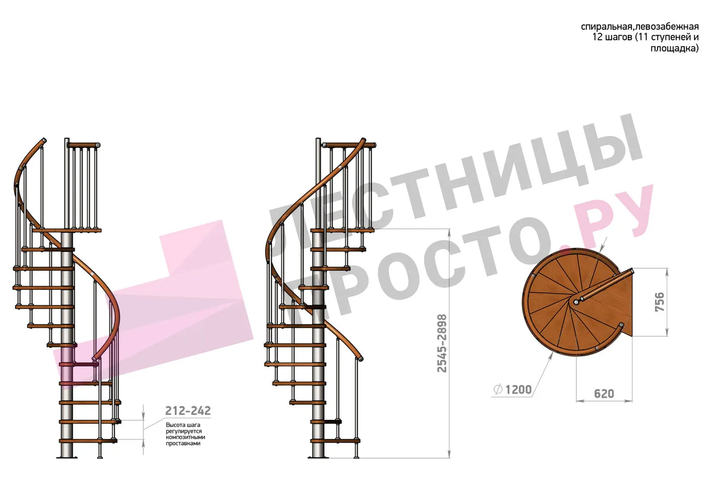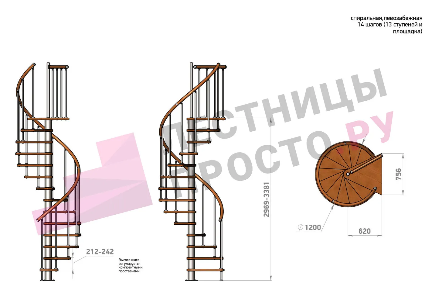 | Винтовая лестница Prosto Spiral Black D120см, h318.2-362.3 см |