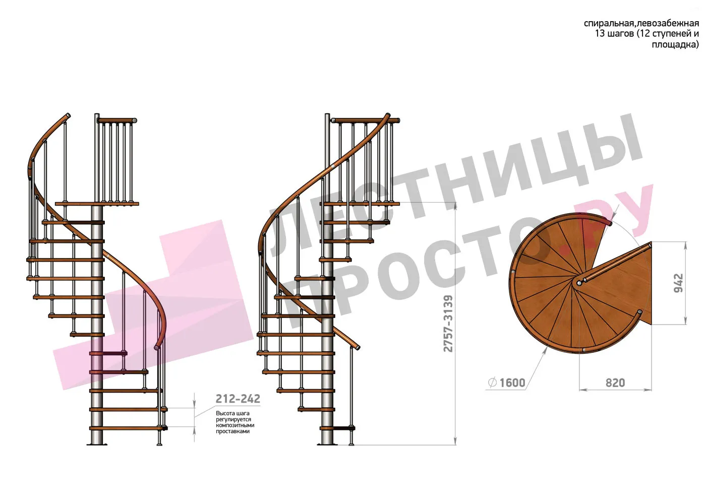 | Винтовая лестница Prosto Spiral Black D140см, h275.7-313.9 см |