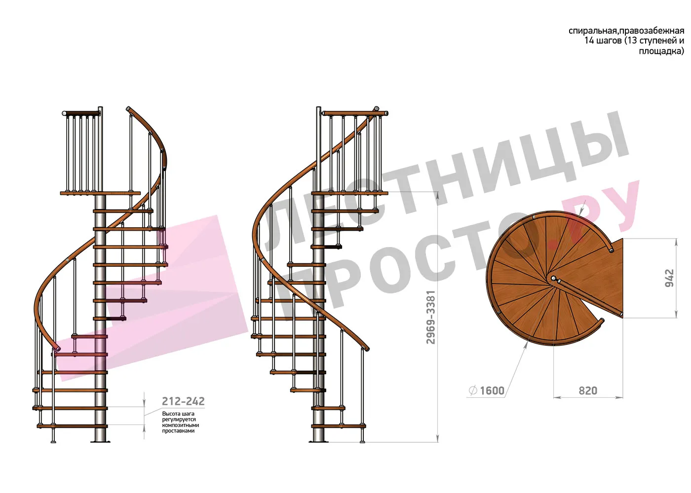 | Винтовая лестница Prosto Spiral Black D160см, h275.7-313.9 см |