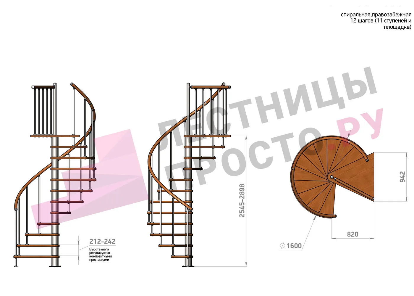 | Винтовая лестница Prosto Spiral Black D160см, h254.5-289.8 см |