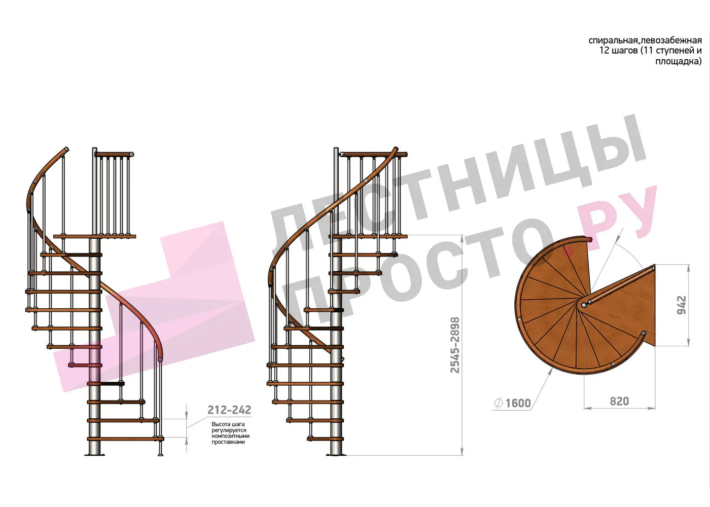 | Винтовая лестница Prosto Spiral White D160см, h318.2-362.3 см |