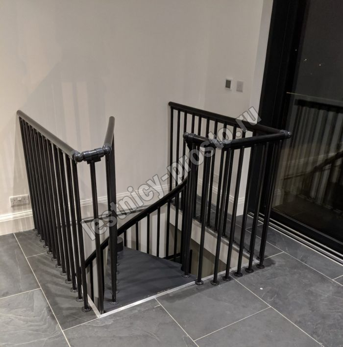 Ступени лестницы изготовлены из бука по технологии MULTIPLEX и покрыты износостойким защитным лаком. Лестница монтируется как по часовой стрелке, так и против. Возможен монтаж в круглый или квадратный проём. Ограждение: стальные трубки, Ø25 мм RAL 7016. Поручень: гибкий цельный ПВХ-поручень Ø40 мм антрацитового цвета. Конструкция и балюстрада окрашены порошковым способом в антрацитовый цвет (RAL 7016).