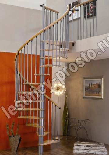 Винтовая лестница SPIRAL DECOR d140 см, серебро, бук лакированный