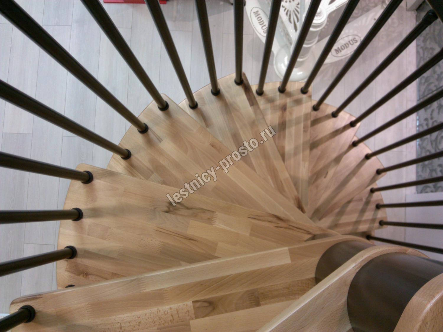 Перила изготовлены из массива бука и покрыты износостойким лаком.