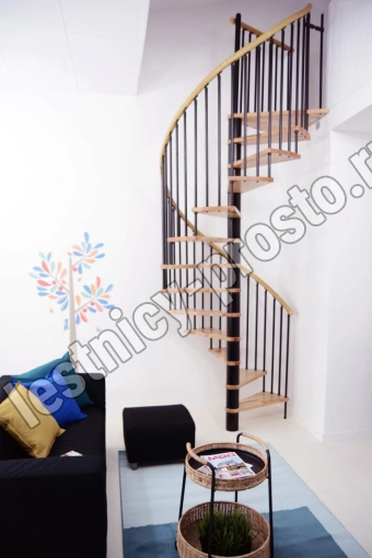 Винтовая лестница SPIRAL WOOD d120 см, черная, лакированный бук