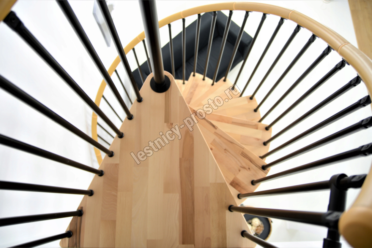 Поручень изготовлен из массива дуба в тон ступеням. Поручень и ступени лестницы покрыты износостойким защитным лаком.