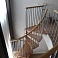 Поручень изготовлен из массива дуба в тон ступеням. Поручень и ступени лестницы покрыты износостойким защитным лаком.