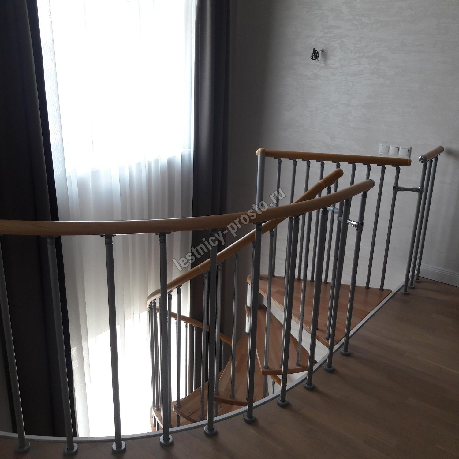 Винтовая лестница SPIRAL WOOD d140 см, серебро, лакированный бук