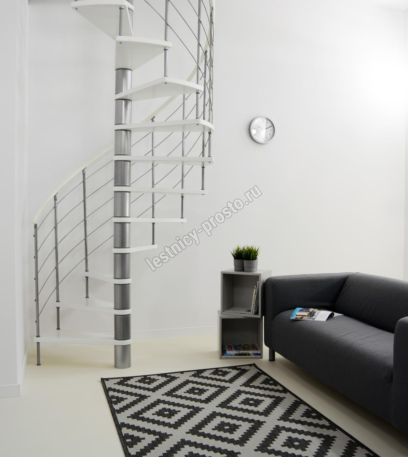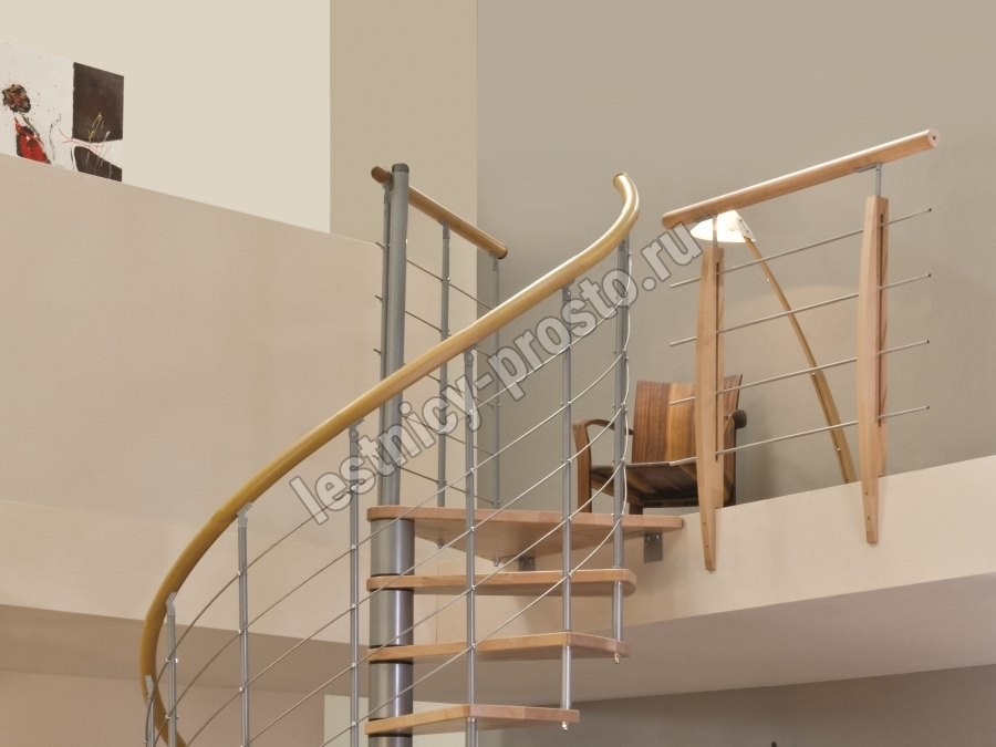 Винтовая лестница Venezia d140 см, серебро, бук лакированный